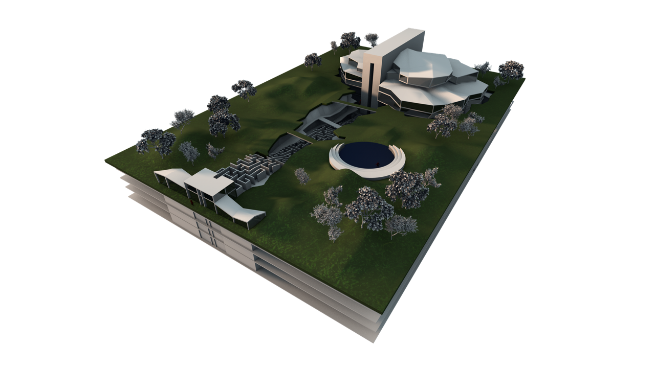 Le Centre HUMANEUS est connecté aux domaines de l’entreprise et de l’éducation, à un studio d’effets visuels, à une salle de spectacle polyvalente et futuriste, à un terrain d’initiation aux mythologies pour les enfants qui les transporte aux sources de la connaissance, d’eux-mêmes et de la vie.