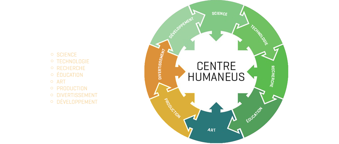 Cet ensemble vivant, cette force qui en permanence agit, se transforme, s’adapte et évolue, constitue le coeur agissant du Centre HUMANEUS, sa raison première d’être et de communiquer et d’interagir fortement avec la nation qui l’accueille, et le grand public international qui le visite.