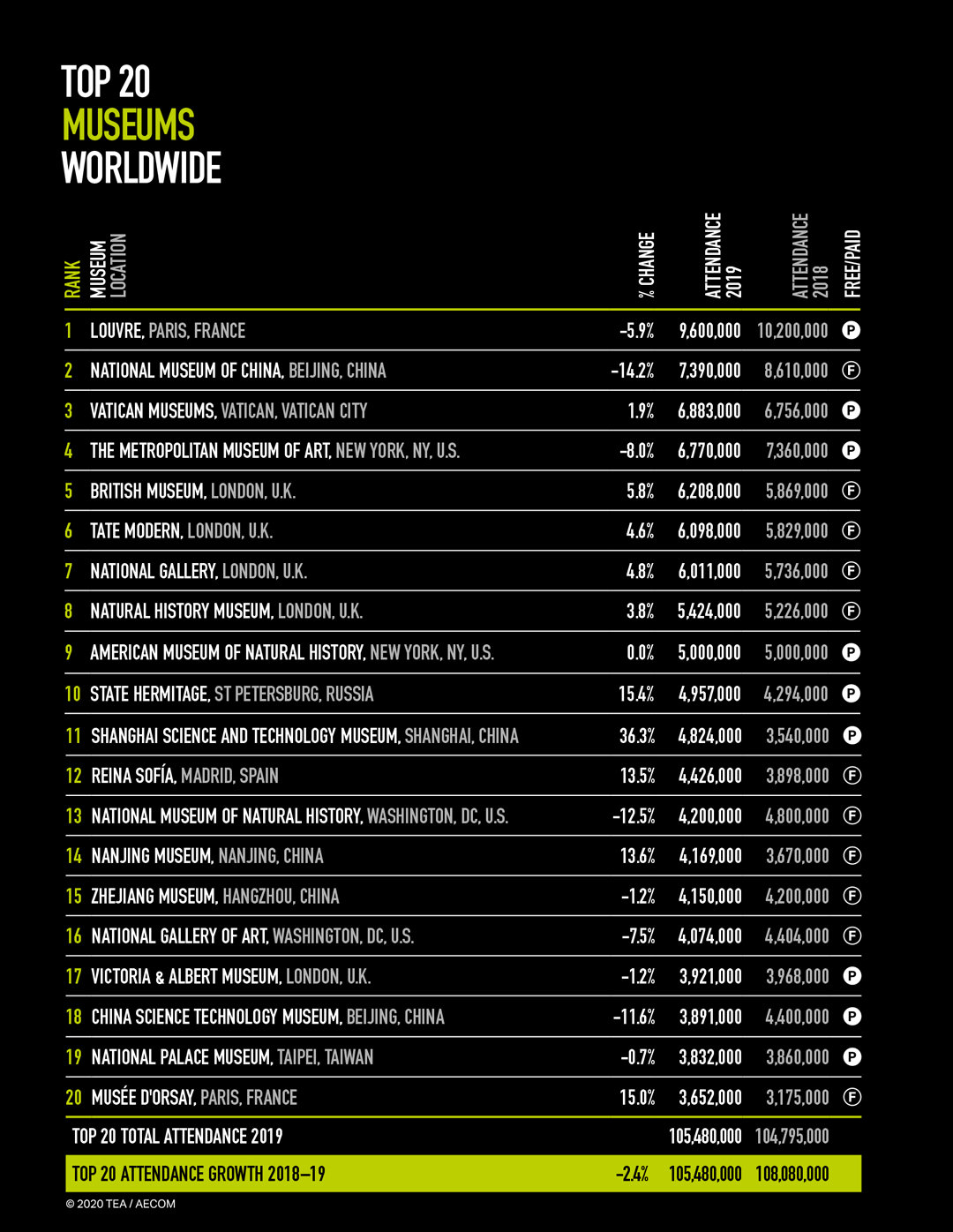 TOP 20 DES MUSÉES À L’ÉCHELLE MONDIALE Retour haut de page TOP 20 DES MUSÉES À L’ÉCHELLE MONDIALE Retour haut de page